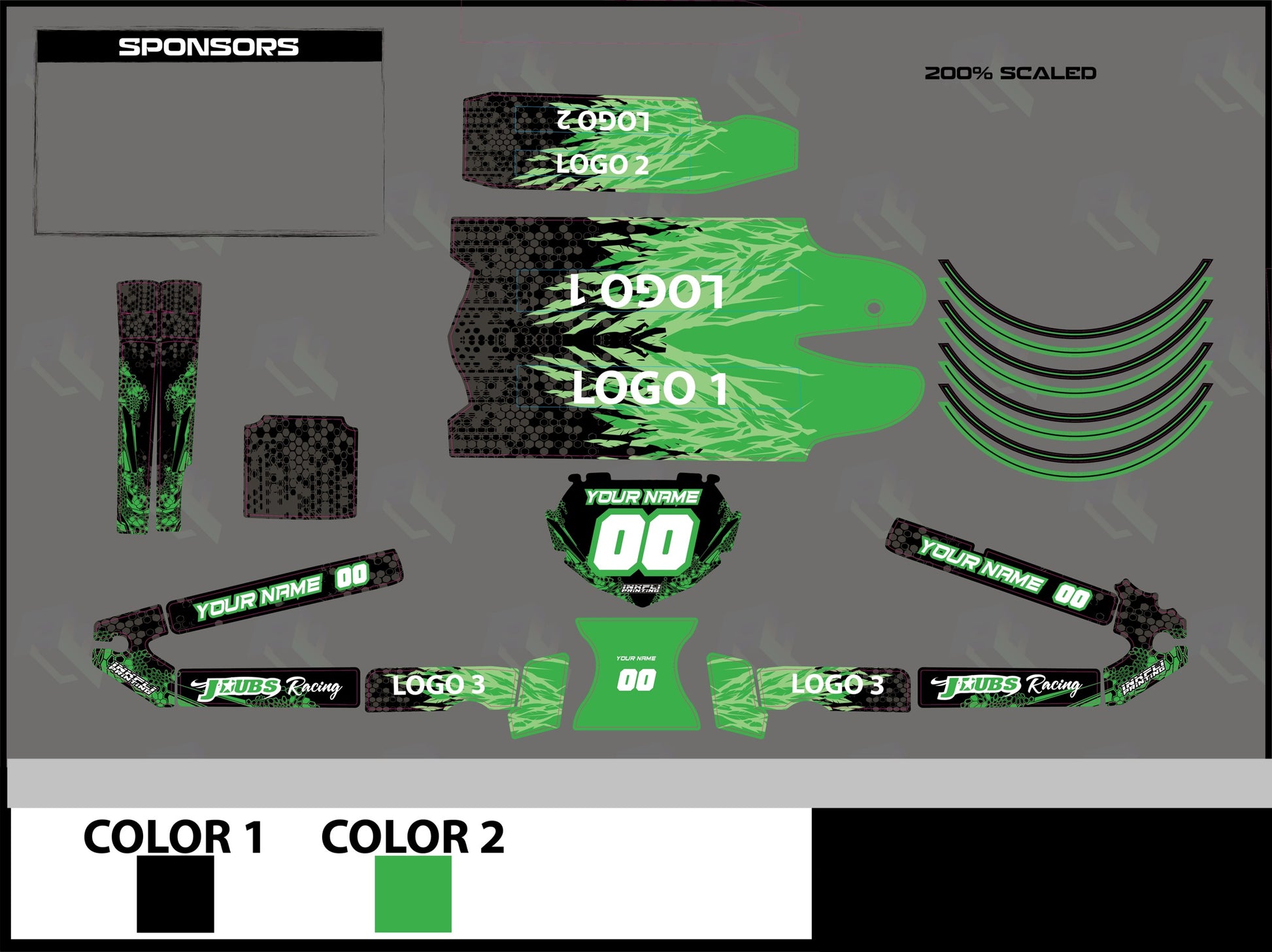 You can customize the name, number plate and 3 logos of your choice. You also can choose up to 2 colors of your choice.