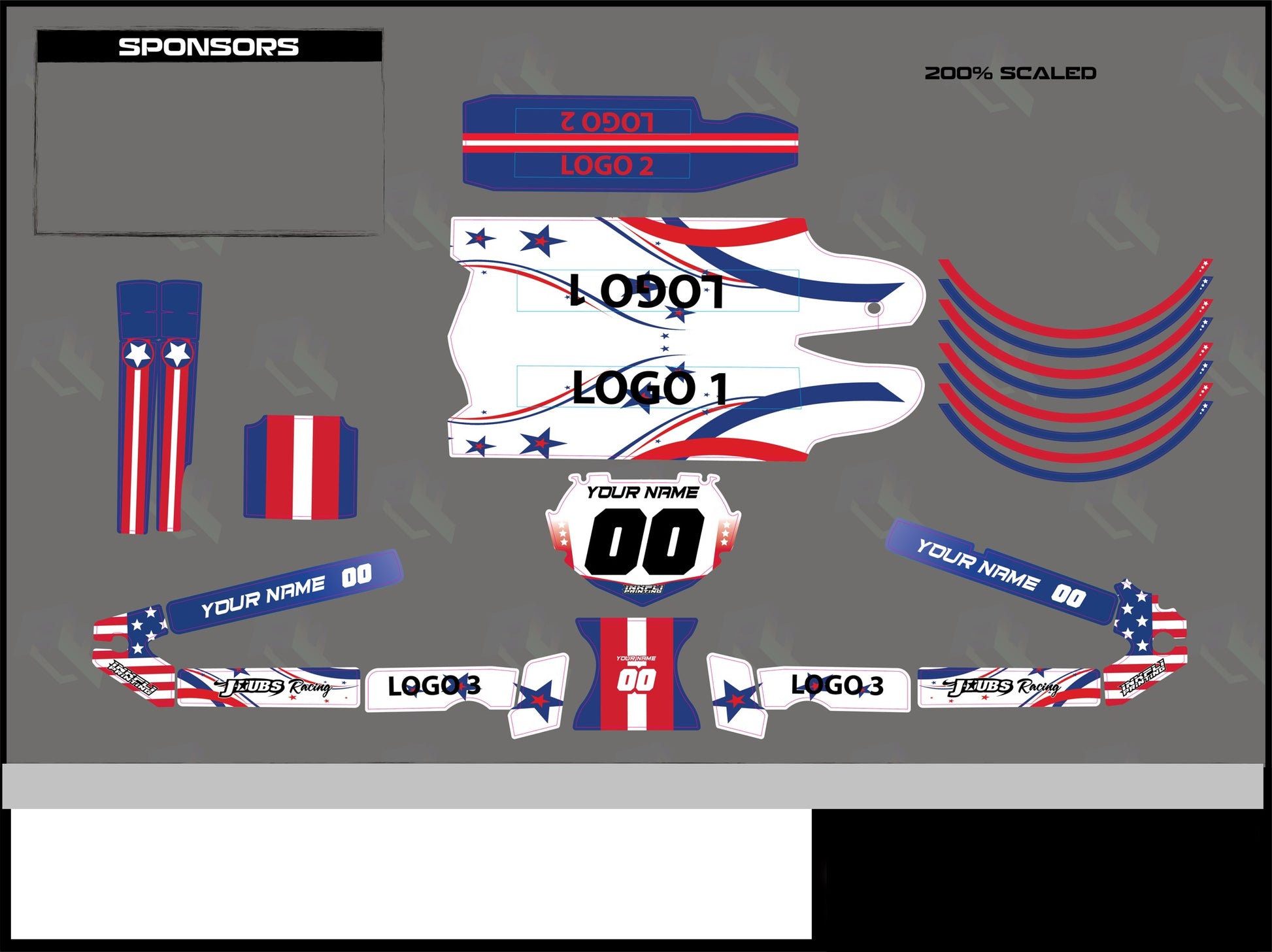 Patriotic as it gets! Get your bike dialed in with this red, white and blue graphic kit made with 6 mil vinyl.